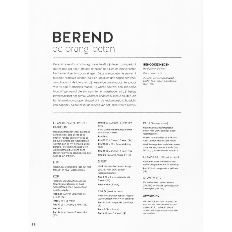 Deze schattige dieren met enorme persoonlijkheden worden gemaakt met behulp van eenvoudige haaktechnieken, en met de stap-voor-stapinstructies kunnen ook beginners meteen aan de slag. Elk dier is voorzien van een universeel patroon en door garen met een andere dikte te gebruiken, met een bijpassende haaknaald, kun je de dieren naar wens groter of kleiner haken.